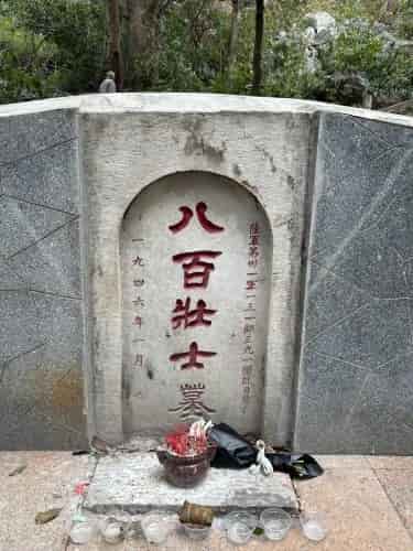 三将军及八百壮士墓位于广西桂林市七星区七星公园七星景区普陀山腰博望坪,由三将军墓、殉职纪念塔及八百壮士墓组成,纪念1944年桂林保卫战中牺牲的国民党陆军第31军131师陈济桓、阚维雍、吕旃蒙三位将军及391团823名官兵,2020年列入第三批国家级抗战纪念设施遗址名录,三位将军于2014年9月被列入首批著名抗日英烈名录。纪念塔高约6米,为四方柱形结构,三将军墓呈圆形青石包筑,左侧嵌有李宗仁等人手迹石刻,总面积350平方米;八百壮士墓为岩石水泥构筑,长8米宽5米,右侧与三将军墓相邻,前方建有纪忠亭。该遗址1984年列为桂林市文物保护单位,2000年升格为自治区级文保单位,1998年起作为国防教育基地,被公布为县(区)级烈士纪念设施,保护范围面积1048.22平方米。抗战胜利后国民政府在此举行安葬仪式并修建纪念设施,新中国成立后三位将军被追认为革命烈士。2016年,桂林市委、市政府在此新建广场...